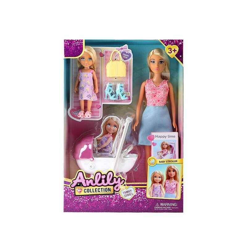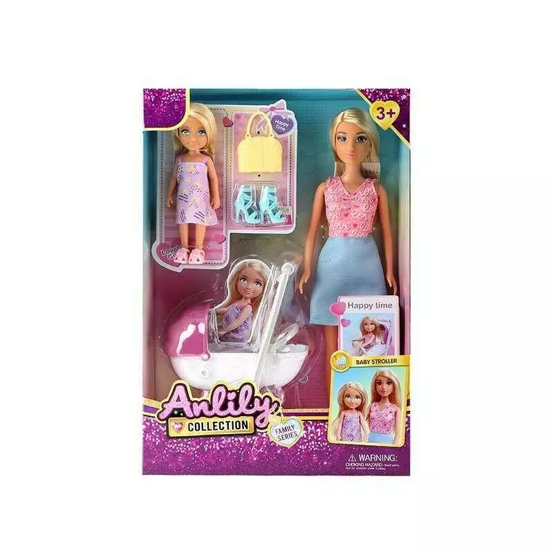Лялька 616321 (24) висота: 30 см, голова та руки: гума, тіло та ноги: пластик, знімний одяг та взуття, маленька лялька: 12 см, візочок, в коробці