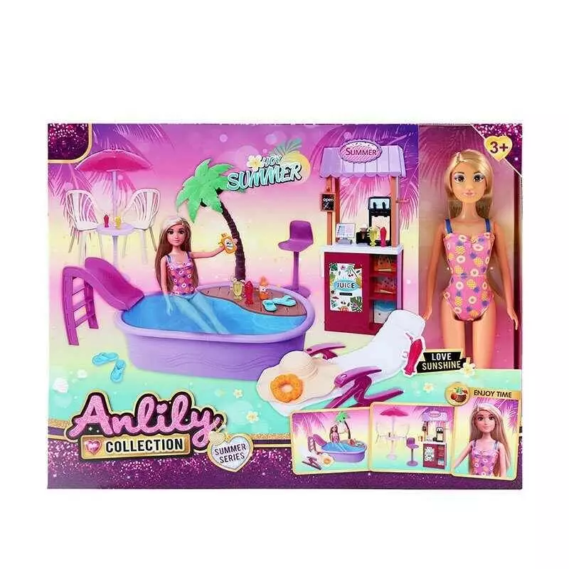 Лялька 616610 (18) висота: 29 см, знімний одяг та взуття, басейн, магазинчик, гірка, аксесуари, в коробці