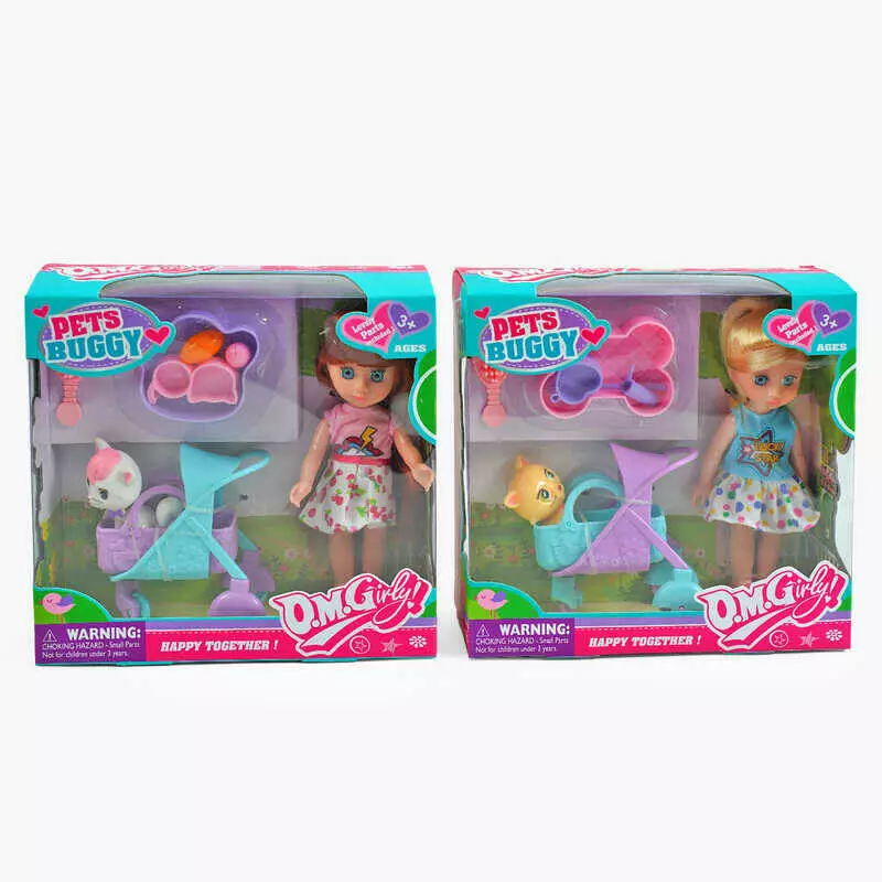 Лялька 64017 (64/2) 2 види, висота 17 см, улюбленець, візок, аксесуари, в коробці