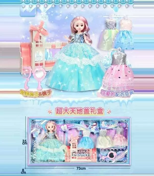 Лялька 8223 (14) висота: 27 см, шарнірні з’єднання, прошите волосся, знімний одяг, взуття, 3 додаткові сукні, аксесуари, ліжечко: 22х19 см, в коробці