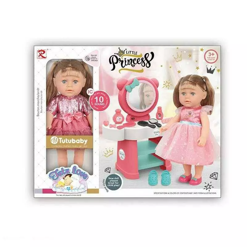 Лялька 82853 (12) музичний чіп, п’є і ходить в туалет, туалетний столик, дзеркало з підсвічуванням та мелодією,висота 35 см, аксесуари, в коробці