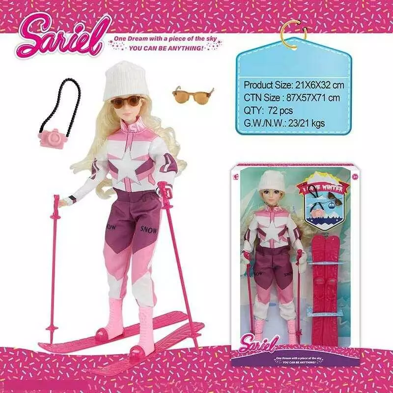 Лялька 92011 A (72/2) висота: 30 см, шарнірні з’єднання, голова і руки: гума, тіло і ноги: пластик, знімний одяг, взуття, лижі, аксесуари, в коробці