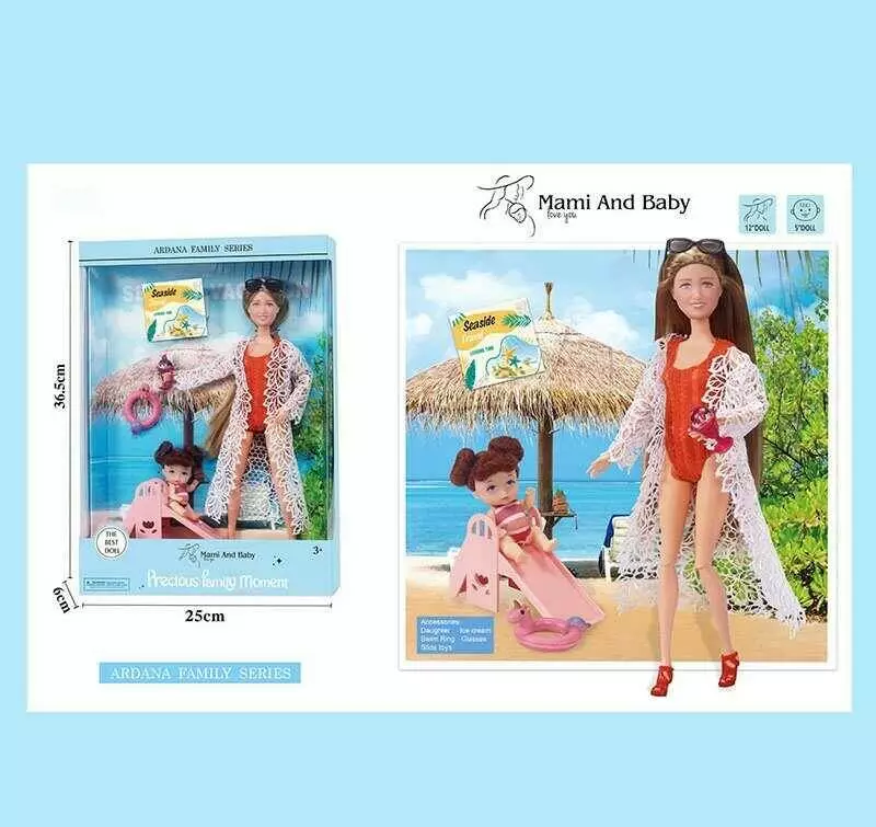Лялька A 795-3 (36/2) мама з донечкою, надувне коло, гірка, коктейль, висота 30 см, в коробці