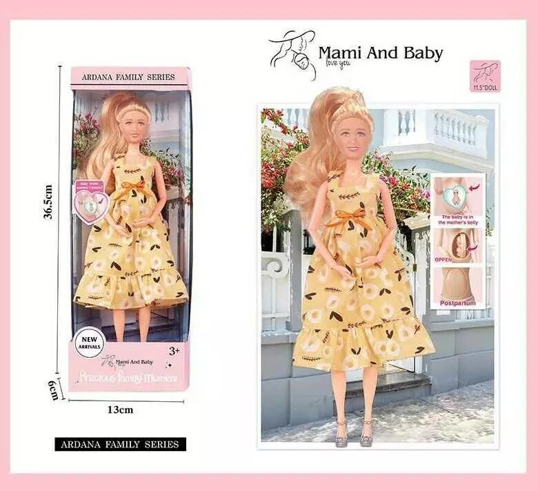 Лялька A 803-1 (72/2) висота 30 см, вагітна, немовля, відчиняється живіт, зйомне взуття, в коробці