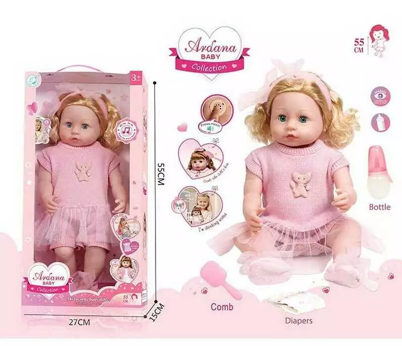 Лялька A 909 C (12/2) гумова, висота - 52 см, заплющує очі, функціональна, прошите волосся, рухомі кінцівки, аксесуари, ходить на горщик, в коробці