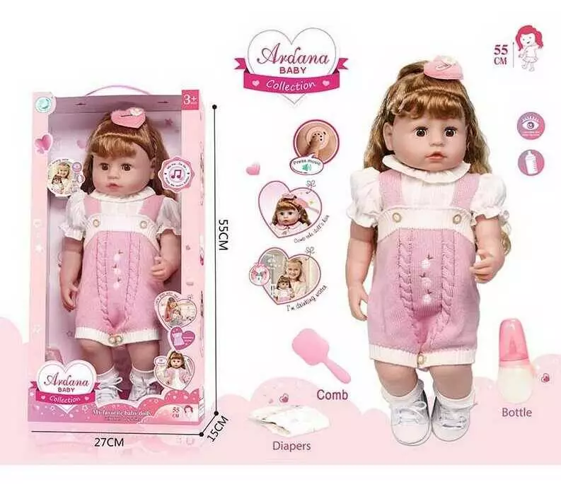 Лялька A 909 D (12/2) гумова, висота - 52 см, заплющує очі, функціональна, прошите волосся, рухомі кінцівки, аксесуари, ходить на горщик, в коробці