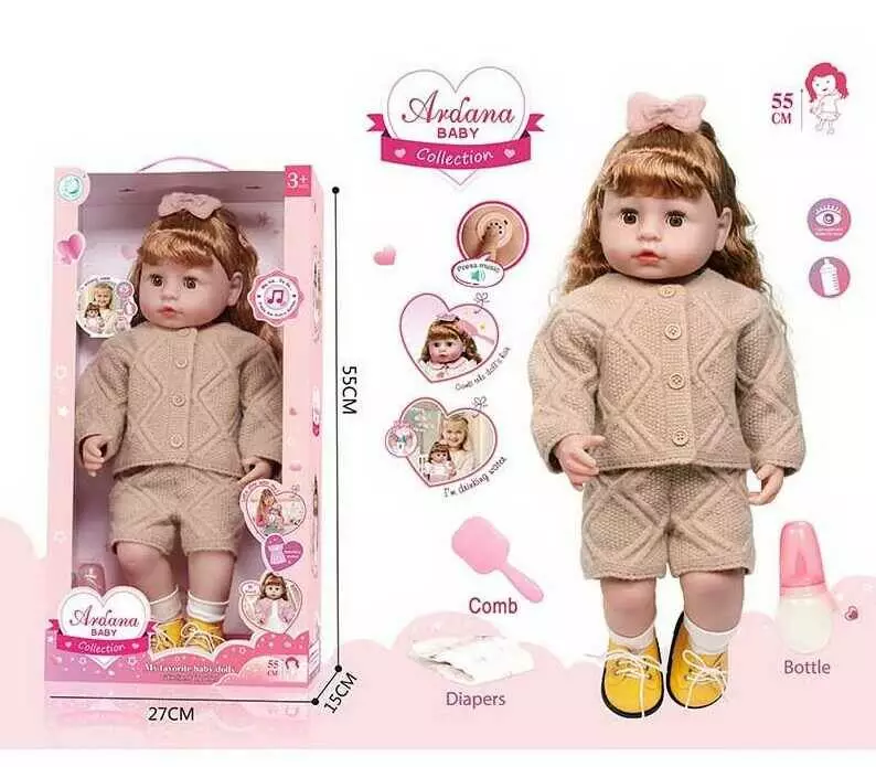 Лялька A 909 F (12/2) висота - 52 см, заплющує очі, ходить на горщик, звук, прошите волосся, рухомі кінцівки, пляшечка, памперс, взуття, в коробці
