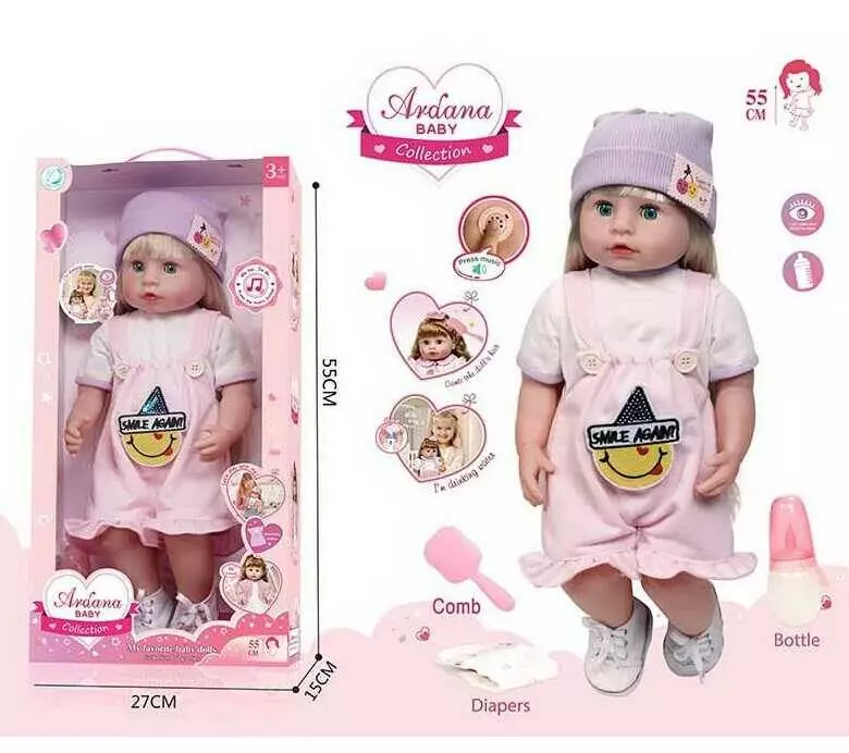 Лялька A 910 D (12/2) гумова, висота - 52 см, заплющує очі, функціональна, прошите волосся, рухомі кінцівки, ходить на горщик, аксесуари, в коробці