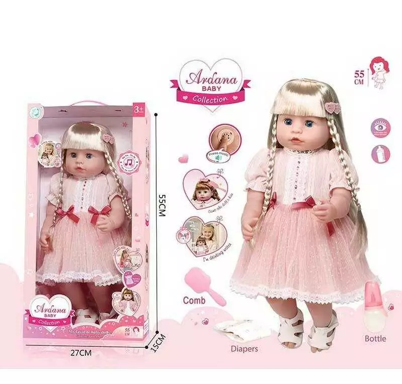 Лялька A 911 D (12/2) гумова, висота - 52 см, заплющує очі, функціональна, прошите волосся, рухомі кінцівки, ходить на горщик, аксесуари, в коробці