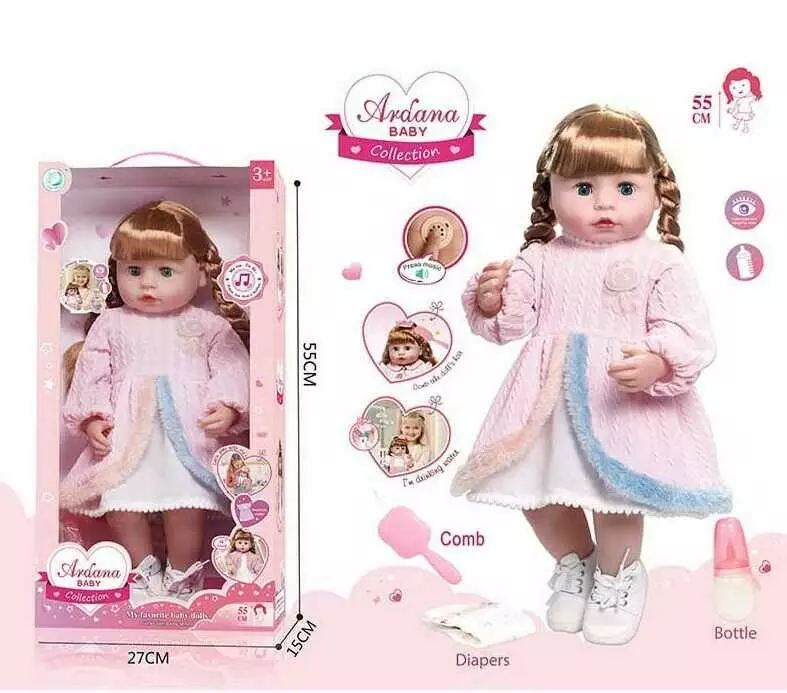 Лялька A 911 F (12/2) гумова, висота - 52 см, заплющує очі, функціональна, прошите волосся, рухомі кінцівки, ходить на горщик, аксесуари, в коробці