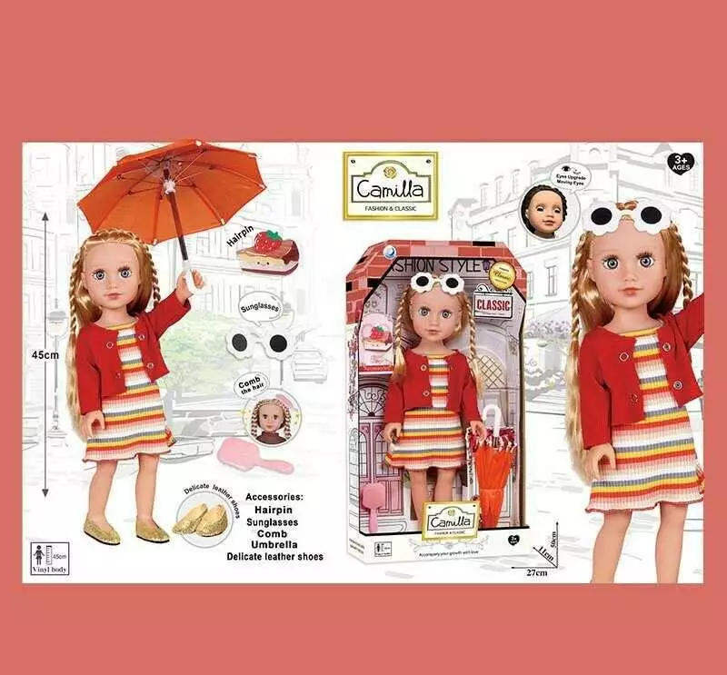 Лялька A 931 A (24/2) висота: 45 см, імітація скляних очей, закриває очі, прошите волосся, гребінець, аксесуари, в коробці