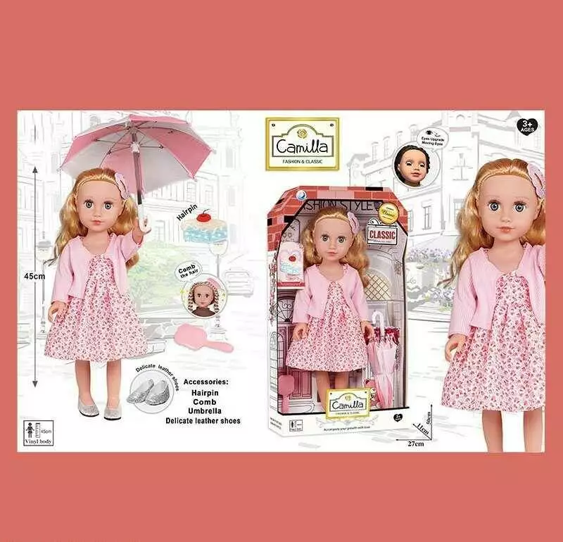 Лялька A 931 B (24/2) висота: 45 см, імітація скляних очей, закриває очі, прошите волосся, гребінець, аксесуари, в коробці