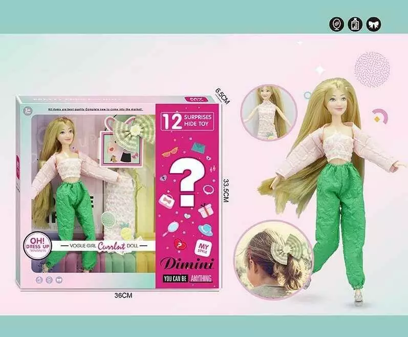 Лялька DMN 02 A (36/2) висота 30 см, зйомне взуття, одяг, 12 аксесуарів, в коробці