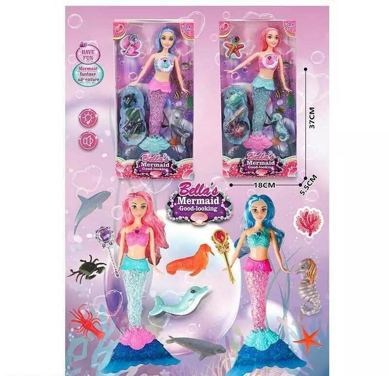Лялька JX 500-32 (48/2) 2 види, “Русалонька”, висота - 36.5 см, підсвічування, пісня, тіло - пластик, голова та руки - гума, аксесуари, в коробці