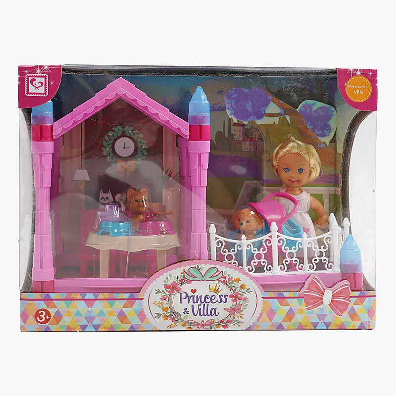 Лялька K 899-169 (12) висота ляльки - 11.5 см, гумова голова, прошите волосся, альтанка, меблі, 2 фігурки песиків, візочок, посуд, в коробці