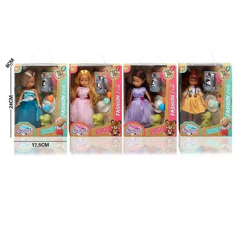 Лялька LK 2504 (96/2) 4 види, 20 см, гумова, імітація скляних очей, взуття, аксесуари, улюбленці, в коробці, ВИДАЄТЬСЯ ТІЛЬКИ МІКС ВИДІВ