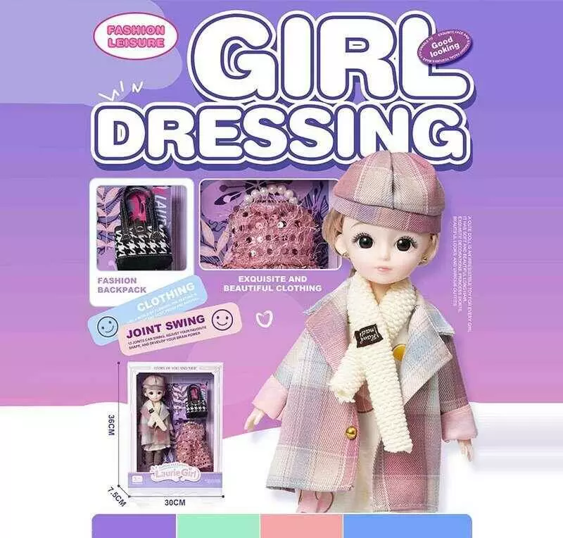 Лялька Q-A 32 (72/2) висота - 30 см, тіло — пластик, голова — гума, шарнірні з’єднання суглобів, знімне взуття, змінний одяг, аксесуари, в коробці