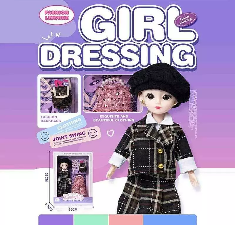Лялька Q-A 35 (72) висота - 30 см, тіло — пластик, голова — гума, шарнірні з’єднання суглобів, знімне взуття, змінний одяг, аксесуари, в коробці