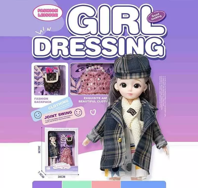 Лялька Q-A 38 (72/2) висота - 30 см, тіло — пластик, голова — гума, шарнірні з’єднання суглобів, знімне взуття, змінний одяг, аксесуари, в коробці