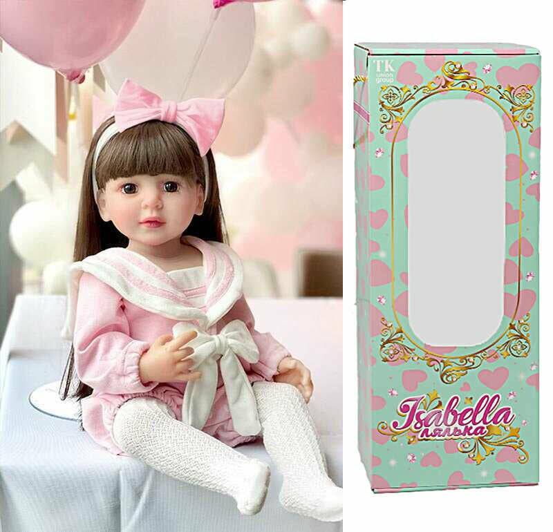 Лялька QM 124 (12) "TK Group", висота: 50 см, гумова, імітація скляних очей, пустушка, пляшечка, памперс, шкарпетки, прикраса для волосся, в коробці