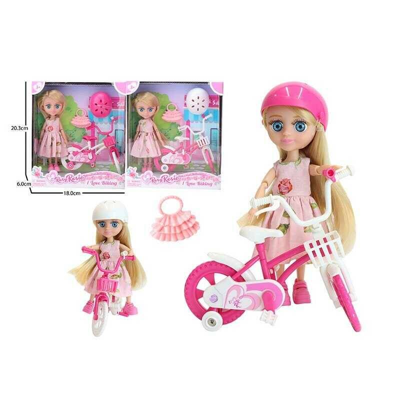 Лялька RR 032 (96/2) 2 види, висота: 16 см, шарнірні з’єднання, імітація скляних очей, знімний одяг та взуття, велосипед, шолом, сумочка, в коробці