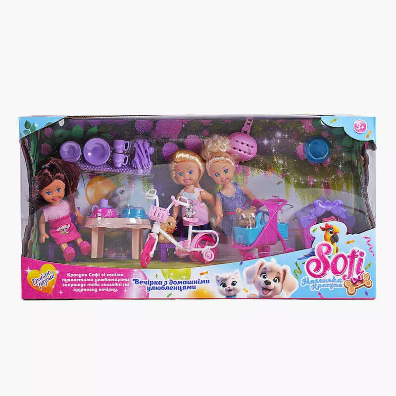 Лялька Sofi 49095 (24/2) “Вечірка з домашнімі улюбленцями”, 3 ляльки, собачки, аксесуари, в коробці