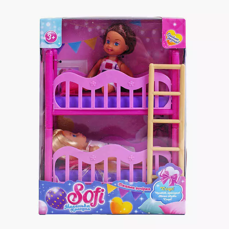 Набір ляльок Sofi 53640 (48/2) “Піжамна вечірка”, 2 ляльки, двоповерхове ліжко, висота ляльяки 11 см, в коробці