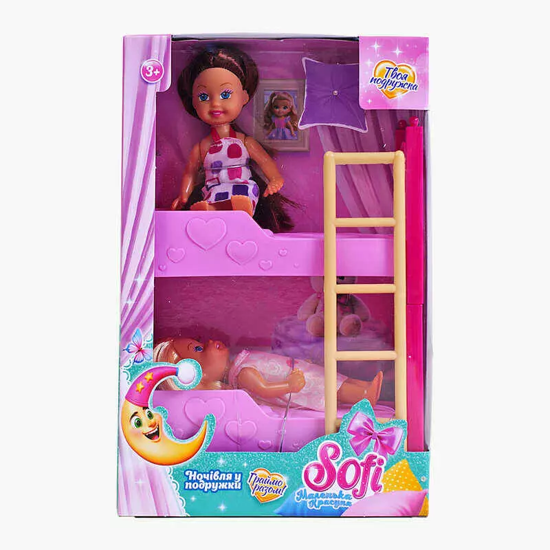 Набір ляльок Sofi 72613 (72/2) “Ночівля у подружки”, 2 ляльки, двоповерхове ліжко, висота ляльяки 11 см, в коробці