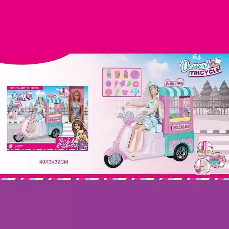 Лялька WG 195 (24/2) висота: 29 см, шарнірні суглоби ніг, аксесуари, мопед з причепом, в коробці