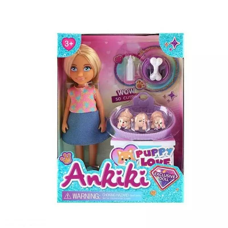 Лялька з аксесуарами 606008 (96) висота - 13 см, рухомі кінцівки, прошите волосся, гумова голова, фігурки песиків, аксесуари