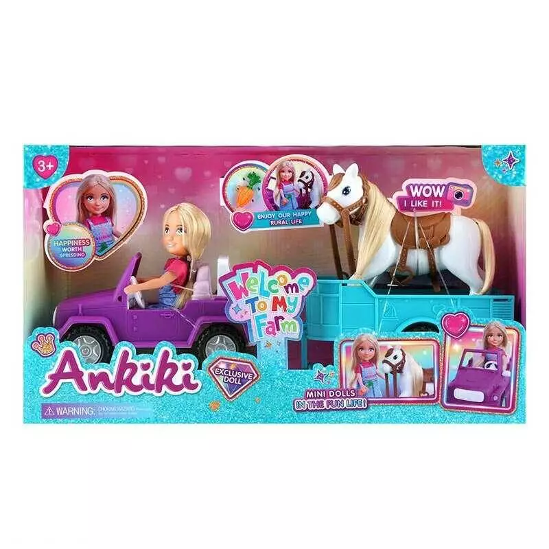Лялька з аксесуарами 606015 (18) висота ляльки - 13 см, машинка з причепом, кінь, муляж морквинки, в коробці