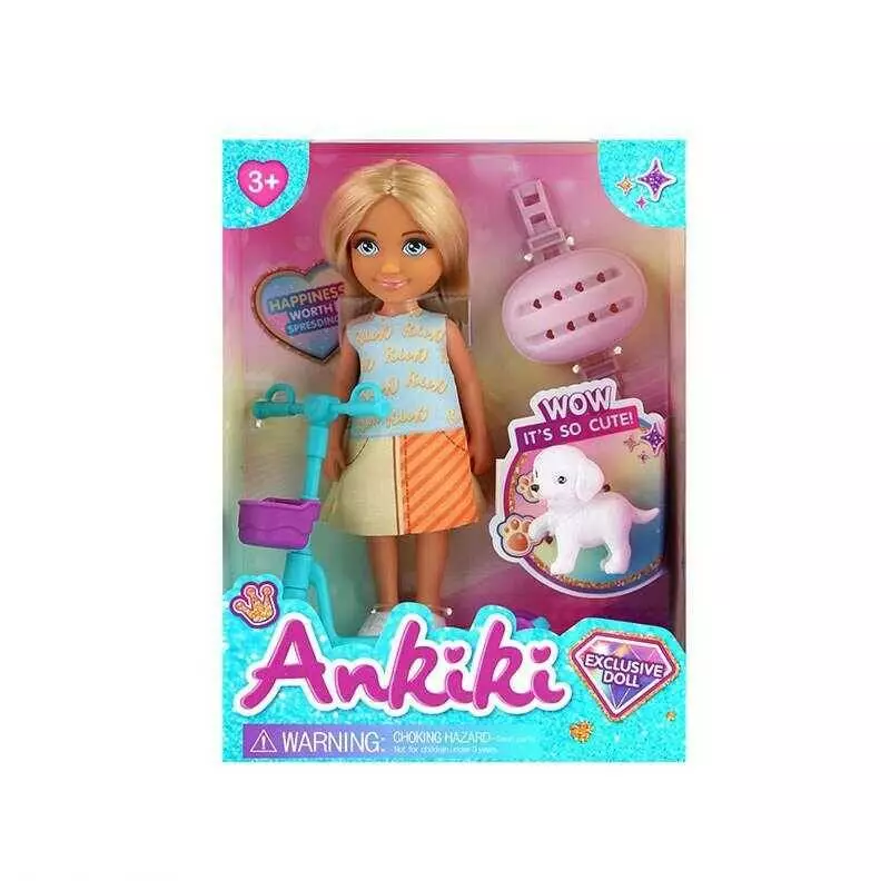 Лялька з аксесуарами 606025 (96) висота ляльки - 13 см, самокат, фігурка песика, захисний шолом, в коробці