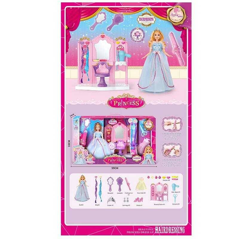 Лялька з аксесуарами 6201 (8) вис. 26 см, шарнір. кінцівки, туалет. столик, стільчик оберт. на 360°, стайлер, фен, 2 прядки волос., в коробці