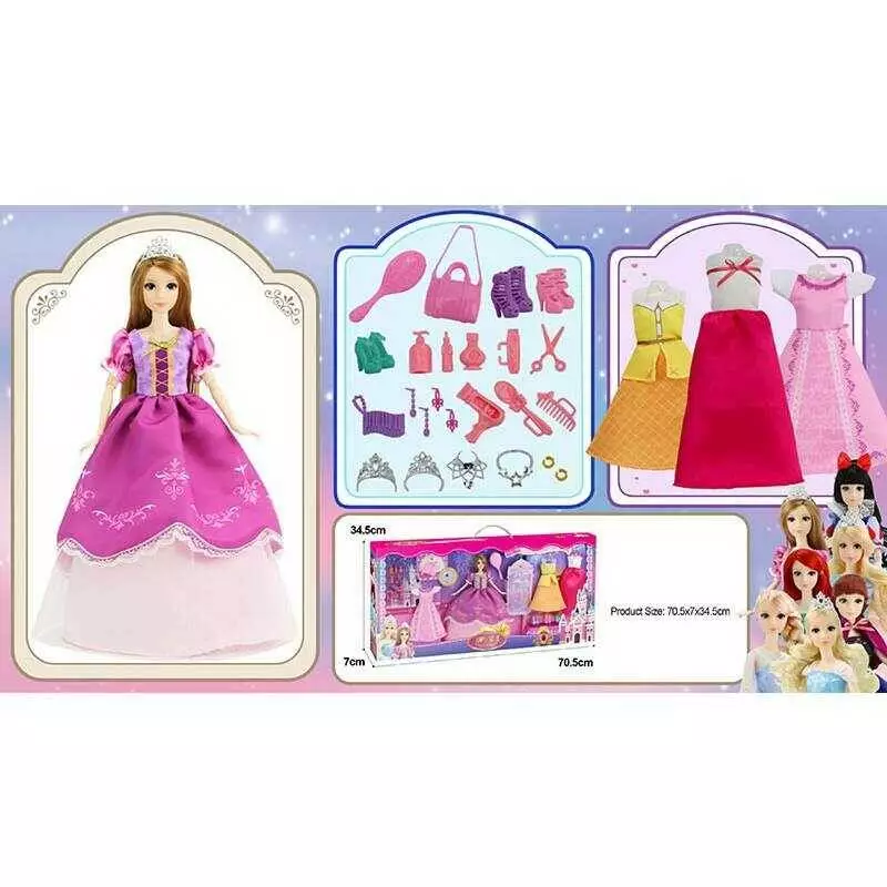 Лялька з аксесуарами 91061 A (18) висота 30 см, діадеми, сережки, намиста, сумочка, гребінець, сукні, туфлі, в коробці