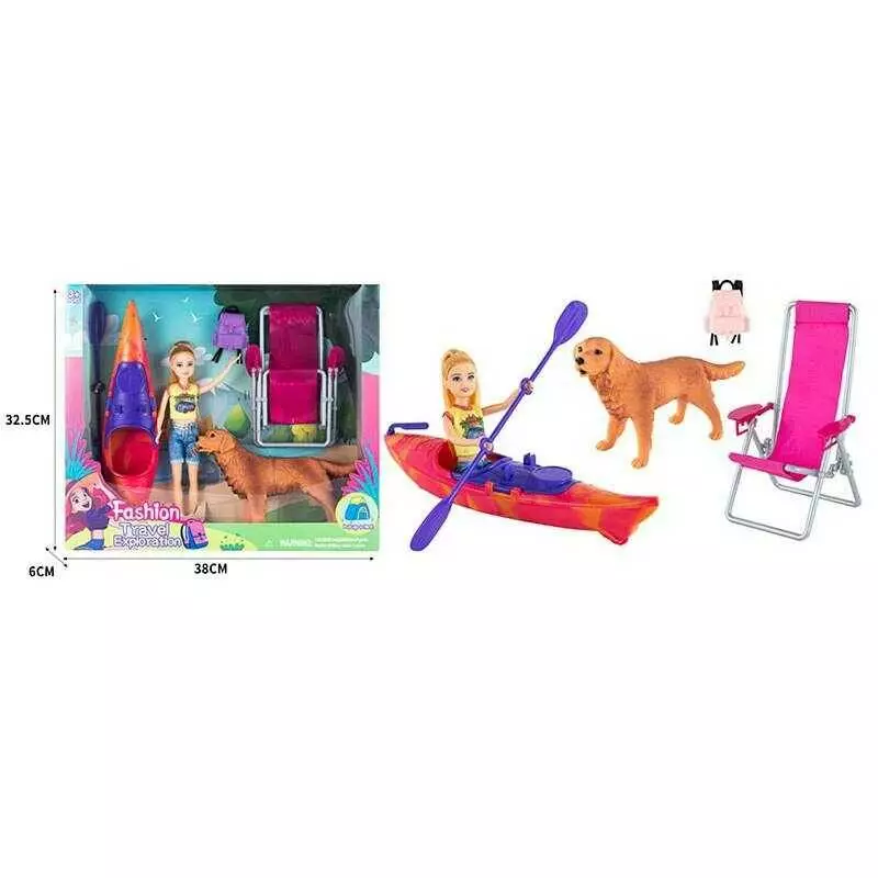 Лялька з аксесуарами ST 5616-14 (36/2) крісло-шезлонг, байдарка, собака, рюкзак, висота 23 см, в коробці