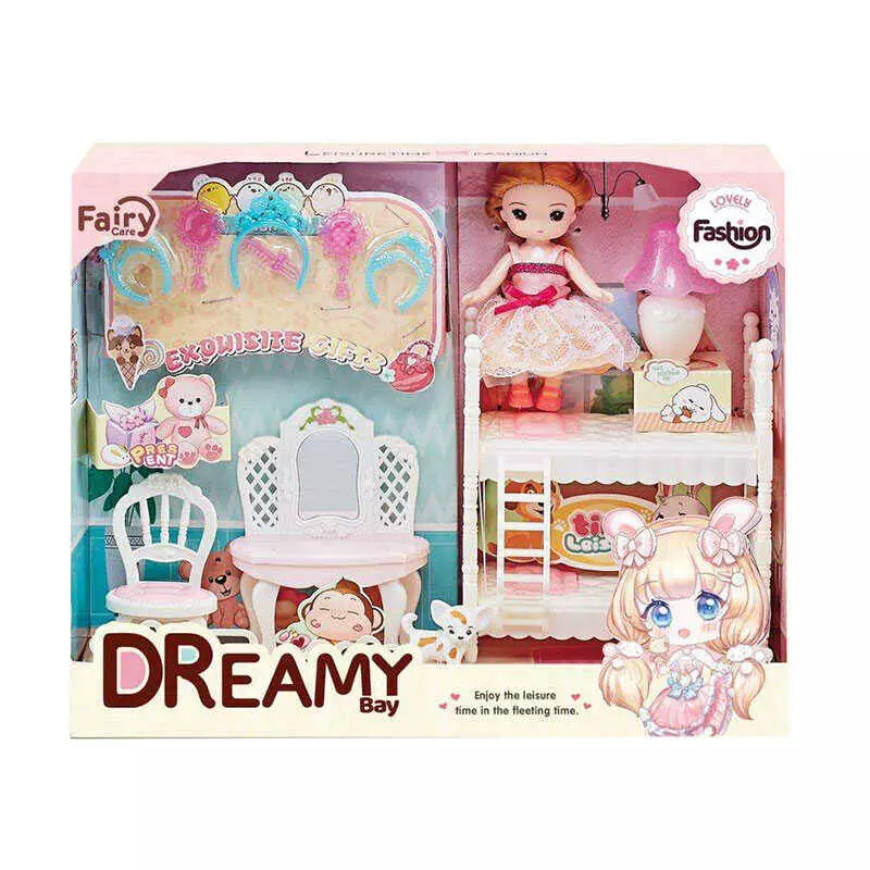 Лялька з меблями 6636 (36) дитяча кімната, прикраси, фігурка собаки, в коробці