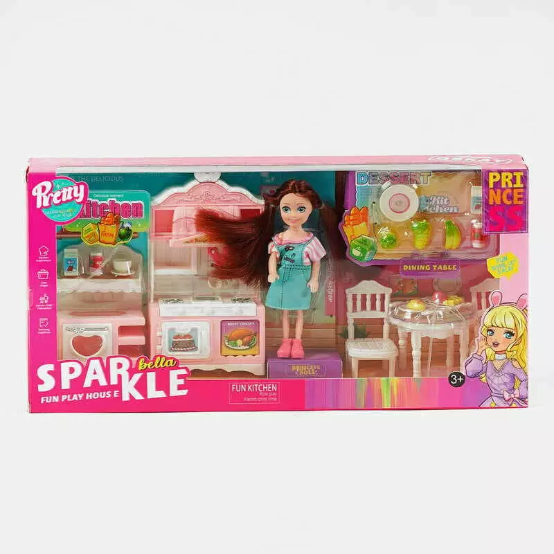 Лялька з меблями 7021 (32) висота 13 см, кухня, кухонні меблі, аксесуари, імітація продуктів, в коробці