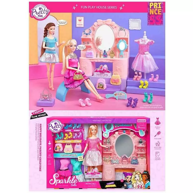 Лялька з меблями 7024 (16) туалетний столик, висота ляльки 30 см, прикраси, одяг, взуття, аксесуари, рухливі кінцівки, в коробці