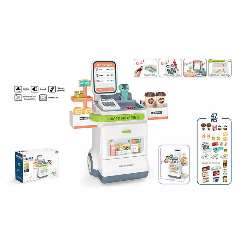 Магазин 668-121 (12) 47 елементів, звук, підсвічування, сканер, продукти, купюри, монети, на батарейках, в коробці