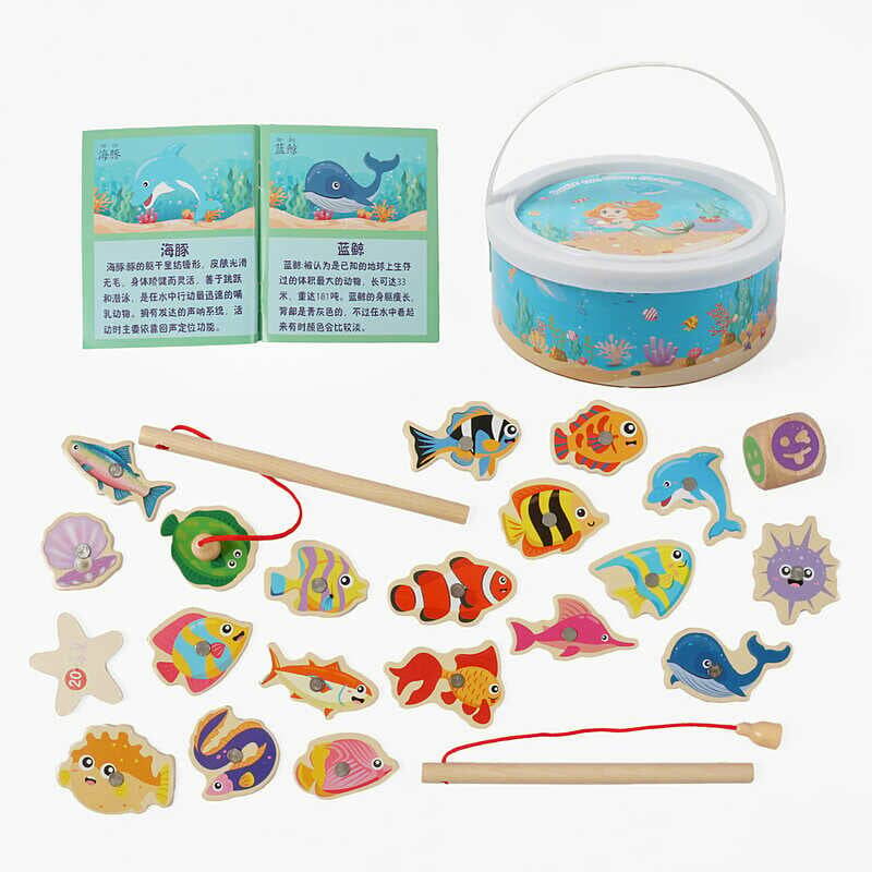 Магнітна риболовля C 74147 (42) дерев`яна, 20 фігурок, кубик, 2 вудочки, у відрі