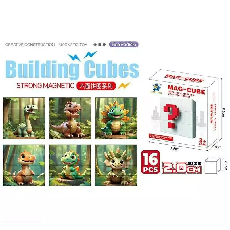 Магнітні кубики FD 1366-17 (288/2) “Динозаври”, 16 магнітних кубиків, 6 зображень, ребро кубика 2 см, в коробці