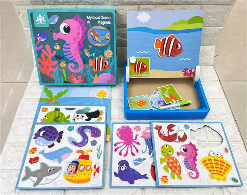 Дерев`яна магнітна дошка C 52501 (28) "Морські мешканці", маркер, картки, магніт, назви англійською мовою, в коробці