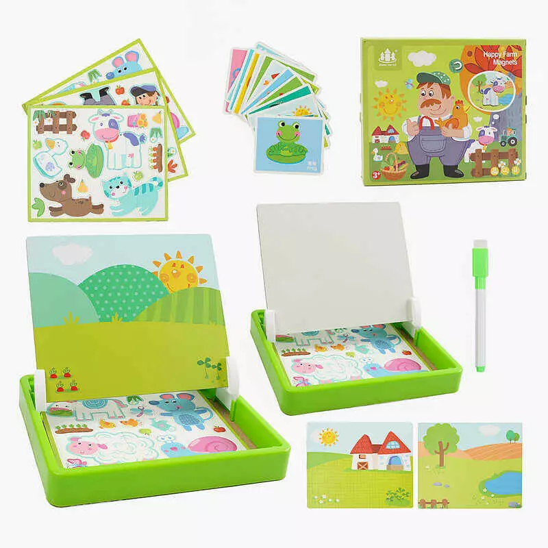 Дерев`яна магнітна дошка C 52502 (28) "Ферма", маркер, картки, магніт, назви англійською мовою, в коробці