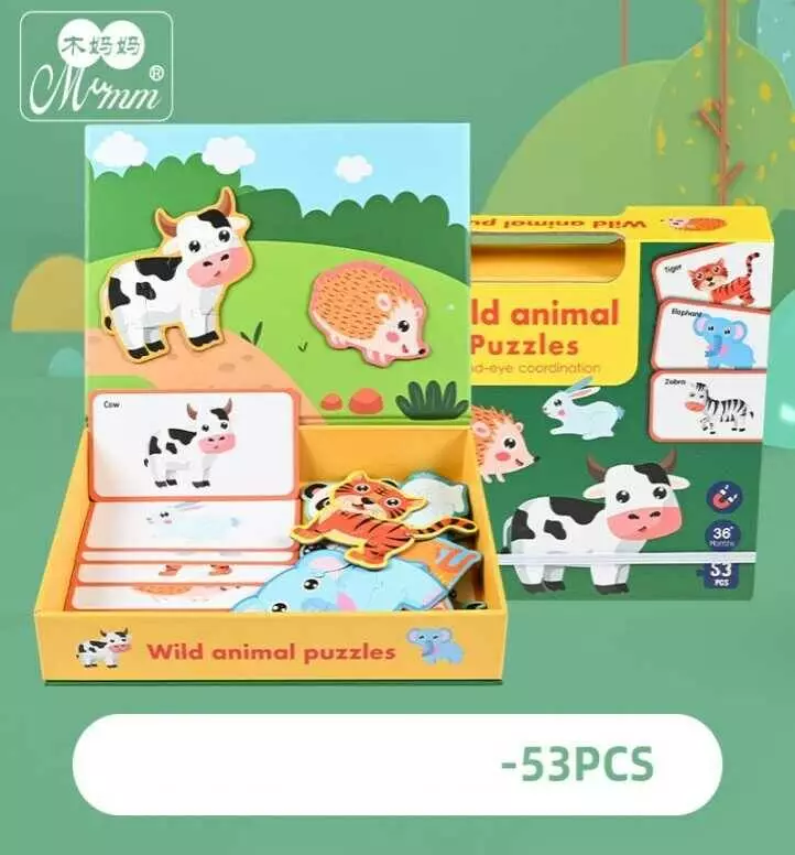 Дерев`яна магнітна дошка C 74612 (32) “Тваринки”, дерев’яні пазли, картки, назви англ. мовою, 53 елементи, в коробці