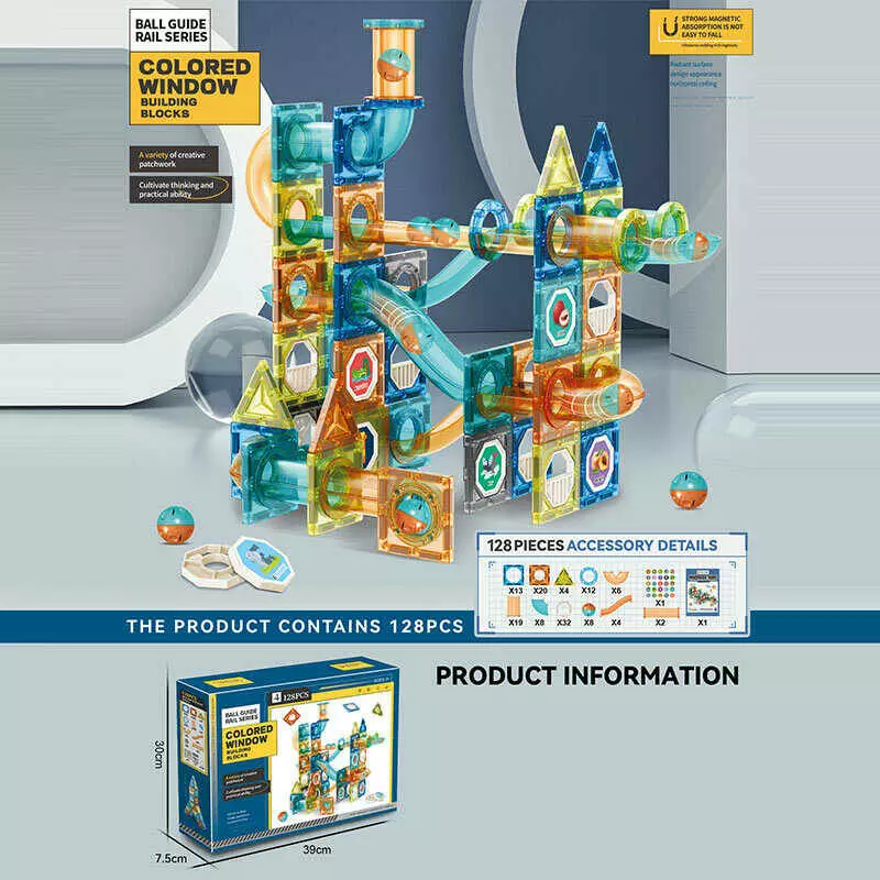 Магнітний конструктор 6695 A (12) 128 деталей, 8 кульок, трубки, в коробці