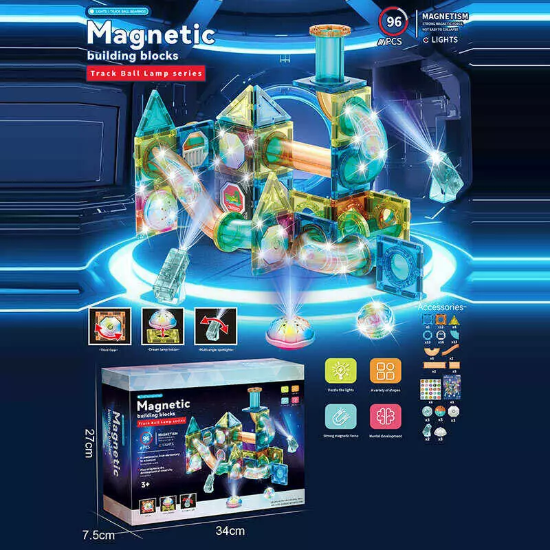 Магнітний конструктор 6802 A (24/2) 96 елементів, підсвічування, кульки, наліпки, в коробці