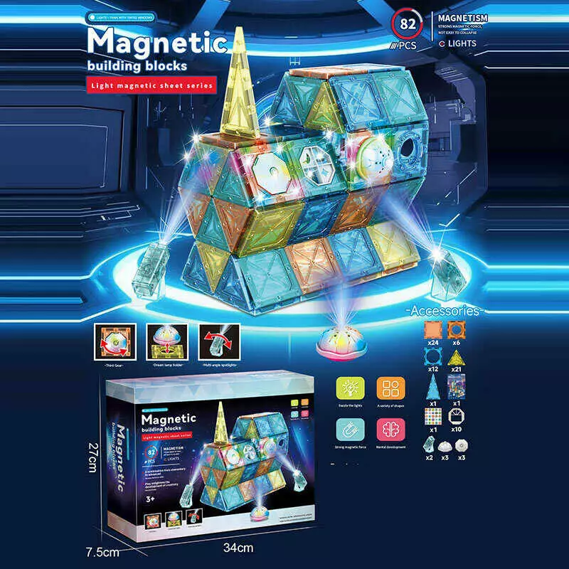 Магнітний конструктор 6806 A (18/2) 82 деталі, підсвічування, в коробці