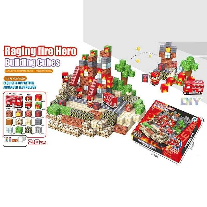 Магнітний конструктор FD 1688 A11 (36) “Пожежа”, 100 елементів, фігурки людей, ребро кубика 2 см, в коробці