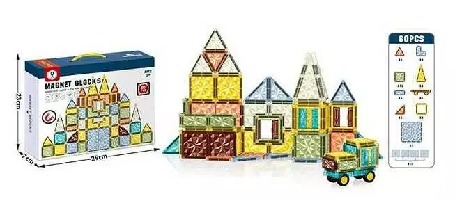 Магнітний конструктор HD 158 A (24/2) 60 деталей, 1 основа для машинки, в коробці