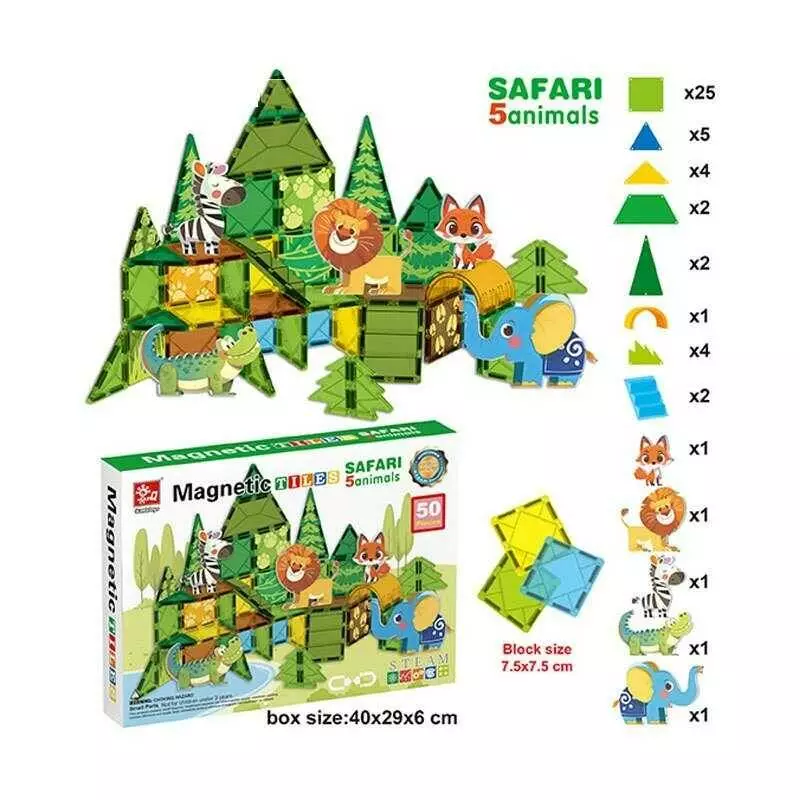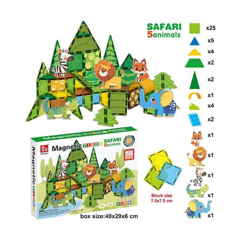 Магнітний конструктор SQ 66002-5 (12) 50 деталей, 5 фігурок тварин, в коробці